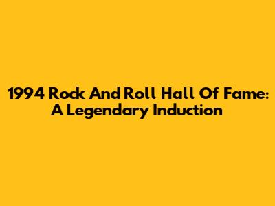 1994 Rock And Roll Hall Of Fame: A Legendary Induction