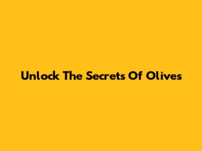 Unlock The Secrets Of Olives