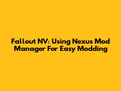 Fallout NV: Using Nexus Mod Manager For Easy Modding