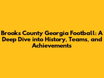 Hey sports fanatics! Ever heard of Brooks County, Georgia, and its passionate love for football? If not, you're in for a treat! We're diving headfirst into the exciting world of Brooks County football, exploring its rich history, the teams that have made it legendary, and the unforgettable moments that have defined its legacy. So, grab your jerseys, and let's get this show on the road! This is a story about the heart of a community, the thrill of competition, and the unwavering spirit of those who wear the green and gold.
