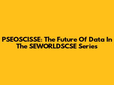 PSEOSCISSE: The Future Of Data In The SEWORLDSCSE Series