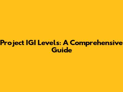 Project IGI Levels: A Comprehensive Guide