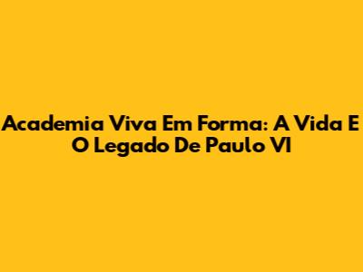 Academia Viva Em Forma: A Vida E O Legado De Paulo VI