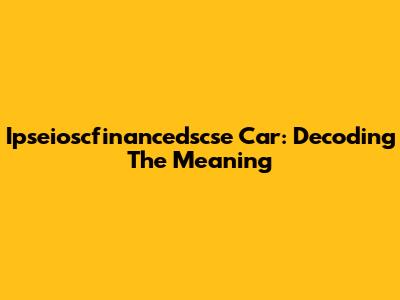 Ipseioscfinancedscse Car: Decoding The Meaning