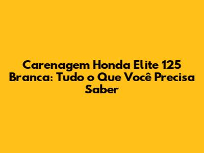 Olá, pessoal! Se você está buscando informações sobre a carenagem Honda Elite 125 branca, chegou ao lugar certo. Neste guia completo, vamos mergulhar no universo das carenagens, cobrindo tudo, desde os benefícios de ter uma carenagem branca até dicas de como escolher, instalar e manter a sua. Prepare-se para uma leitura informativa e cheia de dicas úteis para deixar sua Elite 125 impecável!