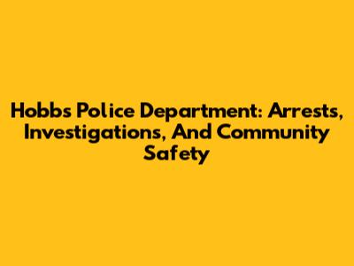 Hobbs Police Department: Arrests, Investigations, And Community Safety