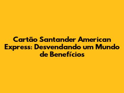 Vantagens do Cartão Santander American Express: Um Mundo de Benefícios