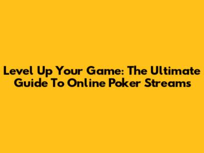 Level Up Your Game: The Ultimate Guide To Online Poker Streams