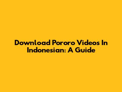 Download Pororo Videos In Indonesian: A Guide