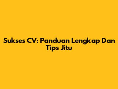 Sukses CV: Panduan Lengkap Dan Tips Jitu