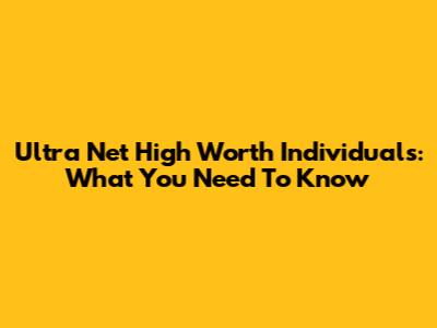 Ultra Net High Worth Individuals: What You Need To Know