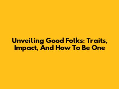 Unveiling Good Folks: Traits, Impact, And How To Be One