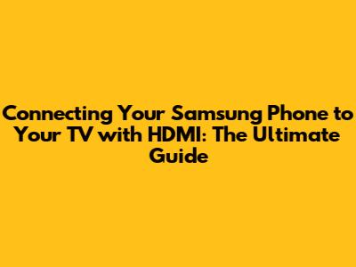 Connecting your Samsung phone to your TV via HDMI is a simple and effective way to enjoy your phone's content on a larger screen. Whether you're watching movies, playing games, or giving a presentation, HDMI provides a reliable and high-quality connection. By following the steps outlined in this guide and troubleshooting any common issues, you can easily transform your TV into a giant display for your Samsung phone. So go ahead, grab your HDMI cable, and start enjoying your phone's content on the big screen!