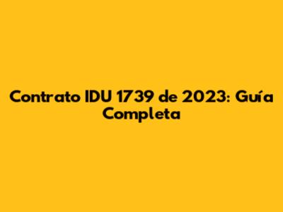 ¿Qué es el Contrato IDU 1739 de 2023 y Por Qué Debería Importarte?