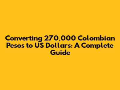 Hey there, finance enthusiasts! Ever wondered about converting 270,000 Colombian pesos (COP) to US dollars (USD)? You're in the right place! This guide breaks down everything you need to know, from understanding the exchange rate to finding the best ways to make the conversion. We'll cover the factors influencing the rate, how to calculate the conversion, and where you can exchange your money. Ready to dive in? Let's get started!