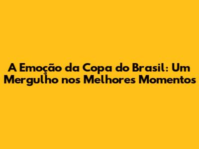 E aí, galera apaixonada por futebol! Se tem uma competição que mexe com o coração dos brasileiros, é a Copa do Brasil. Ela tem aquele tempero especial, onde times de todos os tamanhos têm a chance de brilhar e, quem sabe, desbancar os gigantes. A gente sabe que acompanhar todos os jogos pode ser uma loucura, mas a boa notícia é que os melhores momentos da Copa do Brasil ficam pra sempre na memória. Vamos relembrar alguns daqueles lances que nos fizeram gritar, vibrar e até chorar de emoção?