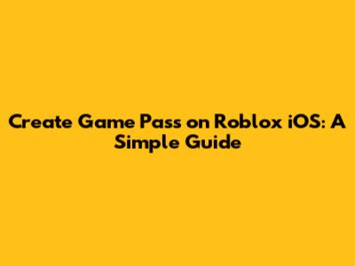 Step-by-Step Guide: Creating a Game Pass on Roblox iOS
