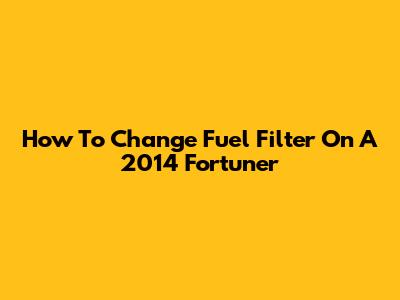 How To Change Fuel Filter On A 2014 Fortuner