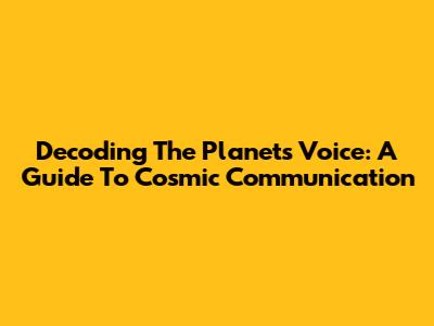 Decoding The Planet's Voice: A Guide To Cosmic Communication