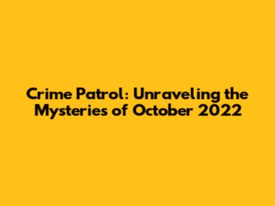 Hey there, true crime enthusiasts! Buckle up, because we're diving deep into the gripping world of Crime Patrol, specifically the October 2022 episodes. For those of you who might be new to this, Crime Patrol is an Indian crime anthology series that has captivated audiences with its dramatic recreations of real-life criminal cases. It's the kind of show that keeps you on the edge of your seat, making you question everything, and yeah, maybe even lock your doors a little tighter. We're talking about intense investigations, suspenseful storylines, and a raw look at the darker side of human behavior. So, grab your popcorn, and let's unravel some mysteries, shall we?