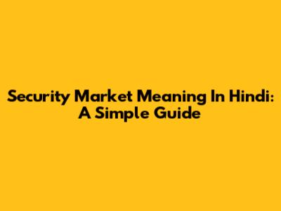 Security Market Meaning In Hindi: A Simple Guide