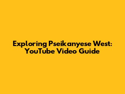 Exploring Pseikanyese West: YouTube Video Guide