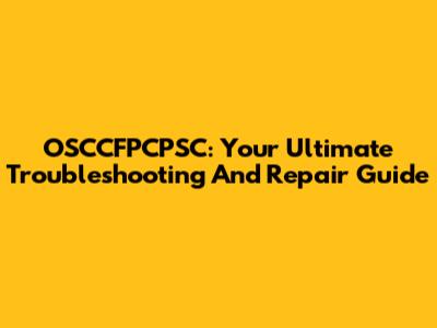 OSCCFPCPSC: Your Ultimate Troubleshooting And Repair Guide