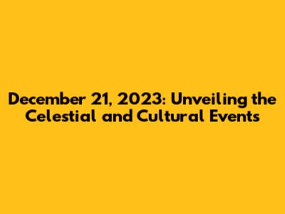 Hey everyone, let's dive into what makes December 21st, 2023, a day to watch out for! This date is more than just another day on the calendar; it's a convergence of astronomical events and cultural significance. We're going to break down the celestial happenings and cultural observances that might make this day particularly interesting. Get ready to explore the skies and the traditions that shape this special day. Whether you're a seasoned stargazer or simply curious about the world around you, there's something fascinating for everyone. Let's get started, shall we?