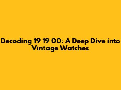 Hey everyone, let's dive into the fascinating world of vintage watches! Today, we're going to crack the code of "19 19 00." What does it mean? Why is it relevant? Well, stick around, because we're about to uncover everything you need to know about these amazing timepieces. From their historical roots to the intricacies of their design and the craftsmanship behind them, we'll explore the world of collecting and appreciating these classic watches. Get ready to embark on a journey that combines history, art, and the sheer joy of owning a piece of the past!