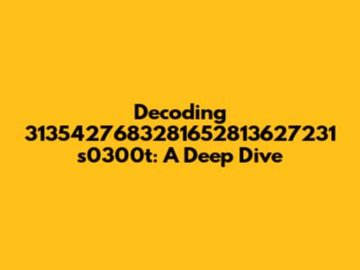 First, let’s break down the string. We have a long sequence of numbers followed by the letters "s" and "t" along with some additional numbers. The numerical part is quite lengthy: 3135427683281652813627231. This kind of long number often hints at some form of identification, like a unique identifier or a very specific code. Now, what does the “s0300t” part signify? The 's' and 't' could be abbreviations for something – maybe 'serial type' or 'special test'. The '0300' might represent a version number, a date, or some other quantitative data. To really figure this out, we need to consider a few scenarios.