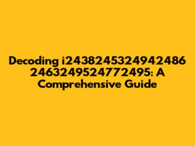 Let's dive into the mysterious world of i2438245324942486 2463249524772495. Okay, guys, so you've stumbled upon this intriguing string of characters and numbers, and you're probably wondering, "What in the world is this?" Well, you're not alone! This guide is designed to help you understand what something like i2438245324942486 2463249524772495 might represent, its potential uses, and how to approach deciphering it. Whether it's a random identifier, a coded message, or some sort of unique key, breaking it down requires a systematic approach. First off, consider the context in which you found this string. Was it in a database? Part of a URL? Or maybe a piece of software code? The origin can give you vital clues. If it's from a database, it could be a primary key or a foreign key linking to another table. In a URL, it might be a session ID or a parameter for tracking user activity. In code, it could be a variable name or a constant. Next, look for patterns. Does the string have a specific length? Are there repeating sequences of numbers or characters? Patterns often indicate a structure. For instance, if the first few characters are always 'i24', that might be an identifier for a specific type of data. The remaining numbers could then represent a unique instance of that type. Another important step is to try to understand the purpose. What is this string supposed to identify or represent? Is it a user ID, a product code, a transaction number, or something else entirely? Knowing the purpose can help you narrow down the possibilities and make educated guesses about its meaning. If you suspect it's an encoded message, try using common decoding techniques. Look for common encryption algorithms like Base64, MD5, or SHA. Online tools can help you quickly decode these types of strings. If it's a more complex encryption, you might need specialized software or the help of a cryptography expert. If the string is part of a larger system, try to trace its path through the system. Where does it come from? Where does it go? What processes does it pass through? By following the string's journey, you might be able to uncover its meaning and purpose. Don't hesitate to consult documentation or ask for help. If the string is part of a software system, there might be documentation that explains its purpose. If you're working with a team, ask your colleagues if they have any insights. Sometimes, a fresh pair of eyes can spot something you missed. Finally, remember that sometimes a string is just a random identifier with no inherent meaning. In these cases, the only way to understand it is to look up its corresponding value in a database or other data store. So, while i2438245324942486 2463249524772495 might seem like a jumble of characters and numbers, with the right approach, you can unlock its secrets and understand its true meaning. Keep digging, keep questioning, and you'll eventually crack the code!