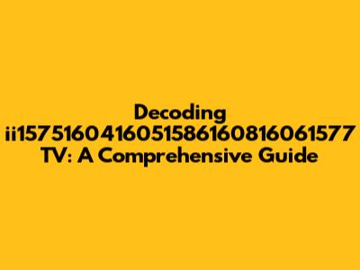 Let's dive into the cryptic world of ii1575160416051586160816061577 TV. You might be scratching your head, wondering what this seemingly random string of characters represents. Well, you're not alone! Often, these alphanumeric codes are used as model numbers, serial numbers, or internal identifiers by manufacturers, retailers, or even within online marketplaces. In this article, we'll explore how to decipher these codes, what information they might reveal about the TV, and where you can typically find them. Understanding these codes can be super helpful when you're trying to find the right accessories, troubleshoot issues, or even compare different TV models. So, buckle up, guys, as we decode this mystery together! The world of consumer electronics can be confusing, with a myriad of model numbers and specifications. Manufacturers often use these alphanumeric codes to track production, identify specific features, and manage inventory. For consumers, these codes can be a key to unlocking essential information about their devices. By understanding how to interpret these codes, you can gain valuable insights into the technical specifications, manufacturing details, and compatibility of your TV. Whether you're a seasoned tech enthusiast or a casual user, learning to decode these identifiers can empower you to make informed decisions and troubleshoot problems effectively. Plus, it can save you time and frustration when searching for the right accessories or support resources. So, stick with us as we unravel the enigma of ii1575160416051586160816061577 TV and equip you with the knowledge to navigate the world of consumer electronics with confidence. Let's get started and transform this seemingly random string into meaningful information!