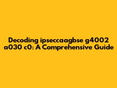 Okay, let's get specific. Looking at "ipseccaagbse g4002 a030 c0," we can make a few observations. First, it's a string comprised of alphanumeric characters separated by spaces. This suggests it might be a composite identifier, where each section has a specific meaning. The "ipseccaagbse" part looks like a coded string, while "g4002 a030 c0" appears to be a series of identifiers or version numbers. The first step in analyzing this string is to break it down into its constituent parts and examine each part individually. The string "ipseccaagbse" looks like it could be an encoded identifier or a version number. Without additional context, it's difficult to determine its exact meaning. However, it's possible that this string represents a specific component, module, or configuration setting. The second part of the string, "g4002 a030 c0", appears to be a series of identifiers or version numbers. These could represent different versions of a software component, hardware revision, or configuration parameter. By comparing these numbers with known versions, you might be able to determine the specific configuration or state of the system. It's important to consider the context in which this string appears. Is it part of a log file, a configuration file, or a hardware specification? The context will often provide valuable clues about its meaning and purpose. If the string is part of a log file, it might represent a specific event or error message. If it's part of a configuration file, it might represent a specific setting or parameter. If it's part of a hardware specification, it might represent a specific component or revision. In some cases, you might be able to find documentation or resources online that provide more information about this specific string. Try searching for the string on Google or in relevant forums and communities. You might find other users who have encountered the same string and have been able to decode its meaning.