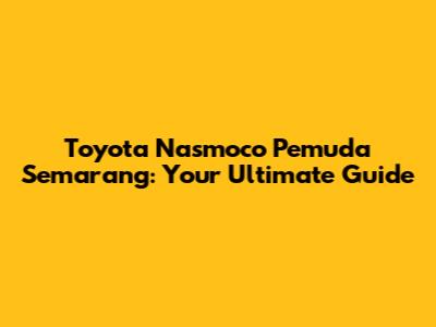 Toyota Nasmoco Pemuda Semarang: Your Ultimate Guide