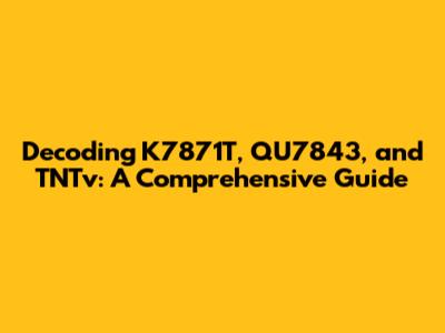 Hey guys! Let's dive into something a little techy today – specifically, the intriguing world of K7871T, QU7843, and TNTv. I know, I know, these strings of letters and numbers might seem like gibberish at first glance. But trust me, we're going to break them down and uncover what they mean. Think of it like a secret code that we're about to crack! This article is designed to be a comprehensive guide, so buckle up because we're about to embark on a fun journey. We'll explore these terms, their potential applications, and their significance. Whether you're a tech enthusiast, a curious learner, or just someone who stumbled upon these terms and is wondering what the heck they are, you're in the right place. We'll approach this with a friendly, conversational tone, avoiding overly technical jargon where possible. Our goal is to make this complex information accessible and engaging. So, grab your favorite beverage, get comfy, and let's decode these seemingly mysterious codes together. We'll cover everything from potential product identifiers to system designations, and even touch on the possible functionalities they might represent. Get ready to expand your knowledge base and impress your friends with your newfound understanding of K7871T, QU7843, and TNTv. It’s going to be a blast, and I promise you'll walk away with a better grasp of what these terms are all about.