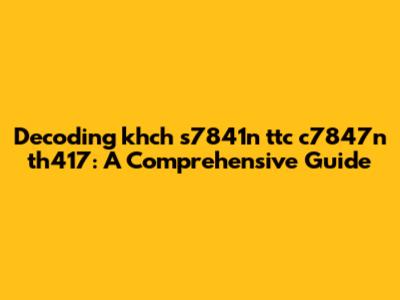 In a business or retail setting, 'khch s7841n ttc c7847n th417' could be a complex product or inventory code. Such codes often combine alphanumeric elements to provide detailed information about a product, including its category, manufacturing date, and specific attributes. In this context: