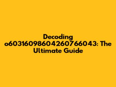 Understanding the Basics: What Could o60316098604260766043 Be?