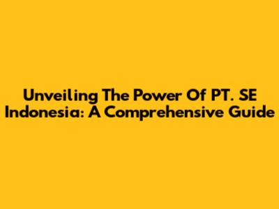 Unveiling The Power Of PT. SE Indonesia: A Comprehensive Guide