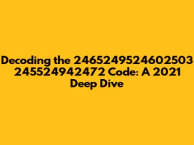 Hey everyone, let's dive into the mysterious world of the code 2465249524602503 245524942472. This string of numbers might seem like a random jumble, but trust me, there's a story behind it, especially when we add the year 2021 into the mix. So, what's the deal with this number sequence? And why should we care? Well, think of it like this: Sometimes, seemingly insignificant data can unlock a treasure trove of information. Imagine this code is a key, and we're about to find out what door it unlocks. Let's start this adventure by breaking down the code, examining its possible origins and significance. We'll explore the various possibilities of what this code could represent and what it meant. Maybe it is a product, a project, a date, or something else. I am so excited to dive in and get some answers, so let's start.