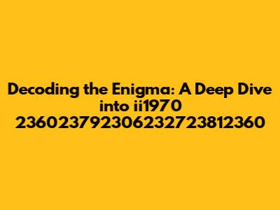 Hey everyone, let's embark on a fascinating journey to decode the enigma of ii1970 236023792306232723812360! It's a string of numbers that might seem random at first glance, but trust me, there's a story behind it. In this article, we're going to break down this numerical sequence, exploring its potential meanings, historical context, and the intriguing possibilities it opens up. We'll approach this with curiosity and a touch of detective work, so grab your magnifying glasses (metaphorically speaking, of course) and let's get started. Think of it as a digital treasure hunt – each digit a clue, leading us to a hidden meaning. We'll examine every facet, every potential interpretation, and every possible connection. This exploration is not just about numbers; it's about uncovering the stories they might hold, the events they might represent, and the secrets they might conceal. It's a deep dive into the unknown, where we'll use logic, intuition, and a healthy dose of speculation to illuminate the path. This isn't just about what the numbers are; it's about what they could be. So, prepare yourselves for an exciting adventure into the heart of this numerical puzzle, where every digit holds a piece of the puzzle, waiting to be discovered.