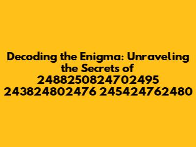 Hey everyone, let's dive into something a little different today! We're going to crack the code on 2488250824702495 243824802476 245424762480. Yeah, I know it looks like a jumble of numbers, but trust me, there's a story here. This isn't just a random string; it's a puzzle, a riddle, a key to something potentially super interesting. So, buckle up, grab your detective hats, and let's unravel this mystery together. We'll explore what these numbers could represent, potential meanings, and the different ways we can try to understand this sequence. It's like being a digital Sherlock Holmes, except instead of a pipe and magnifying glass, we've got a keyboard and a search engine. Sounds like fun, right? Let’s get started and see what we can dig up.