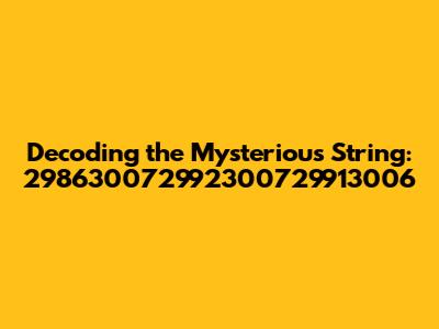 Hey guys! Ever stumble upon a string of numbers that just seems… mysterious? Well, that's exactly what we're diving into today with the enigmatic sequence 298630072992300729913006. It might look like a random jumble, but trust me, there's a story behind every number. Our mission? To crack the code and figure out what this string represents. Buckle up, because we're about to go on a digital treasure hunt, exploring everything from potential origins and meanings to how this string might be used in different contexts. This article is all about unraveling the secrets behind what looks like a cryptic combination of numbers. We'll start by taking a good, hard look at the string itself. What does it actually look like? Then, we'll try to find any clues that will point us towards a possible meaning or usage. This will be an exciting journey, and it will be up to us to explore different possibilities. Ready to dive in? Let's get started!