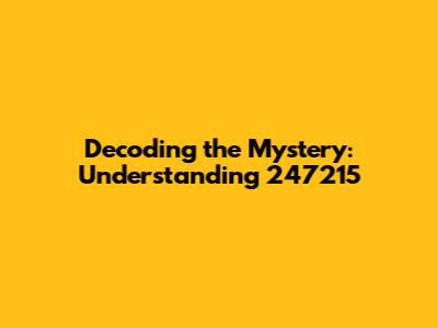 Let's dive into the world of numbers and try to decode the mystery behind the seemingly random sequence: 247215. At first glance, it might appear as just a meaningless string of digits. However, in various contexts, numbers can hold significant meaning. They might represent codes, identifiers, measurements, or even dates. To truly understand what 247215 signifies, we need to explore different possibilities and scenarios where such a number could be relevant. So, buckle up, guys, as we embark on this numerical adventure, breaking down each component and piecing together the puzzle to reveal its hidden significance.