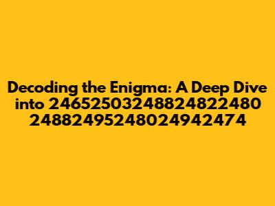 Alright, buckle up, folks! We're about to embark on a thrilling adventure into the heart of a numeric puzzle: 24652503248824822480 24882495248024942474. Now, before your eyes glaze over, let's make one thing super clear: we're not just throwing random numbers around. This is about understanding; about decoding a sequence that, at first glance, might seem like a jumble. But trust me, everything has a reason, and in the world of numbers, that reason is usually pretty fascinating. We'll be breaking down what this sequence might represent, exploring possible origins and meanings, and generally having a blast demystifying it. This isn't just about the numbers; it's about the stories they might tell, the connections they might reveal, and the sheer fun of cracking a code. So, whether you're a seasoned number enthusiast or just curious, get ready to dive in. We’re going to explore the different angles and possible meanings of 24652503248824822480 24882495248024942474. Ready? Let's go!
