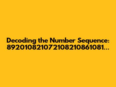 Alright, guys, let's dive into this intriguing number sequence: 892010821072108210861081108810771075108010861085. At first glance, it might seem like a random jumble of digits, but who knows? Maybe there’s a hidden message or pattern waiting to be uncovered! In this article, we're going to break down possible interpretations, look at different approaches to decode it, and explore the fascinating world of number sequences.