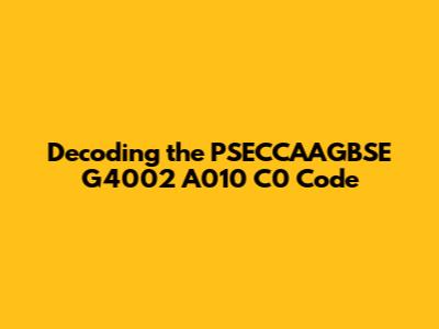 Have you ever stumbled upon a seemingly random string of characters and wondered what it meant? Today, we're diving deep into one such enigma: PSECCAAGBSE G4002 A010 C0. This alphanumeric code might appear cryptic at first glance, but with a bit of investigation, we can unravel its potential meaning and significance. Let's break down each component and explore the possibilities. Understanding these types of codes is crucial in various industries, from manufacturing to logistics, and even in software development. They often serve as identifiers, serial numbers, or part numbers, helping to track, manage, and differentiate various items or processes. So, grab your detective hats, guys, and let's embark on this decoding adventure!