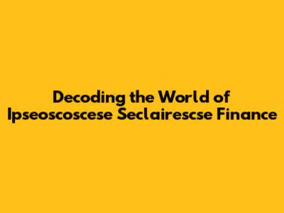 Hey guys! Ever heard of ipseoscoscese seclairescse finance? Probably not, and that's totally okay! It's a niche term, and honestly, it's likely a made-up one. But let's pretend it's a real concept. This article is all about unraveling the mysteries of what that could potentially entail, and exploring how it might interact with the financial world. We'll be diving deep, so buckle up!