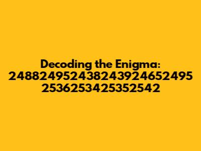 Hey everyone! Ever stumble upon a sequence of numbers that seems like a total mystery? Well, today, we're diving deep into the world of number sequences, specifically, the intriguing series: 248824952438243924652495 2536253425352542. Sounds a bit cryptic, right? But don't worry, we're gonna break it down and see what we can uncover. Think of it like being a digital detective, piecing together clues to understand what this number string is all about. This isn't just about the numbers themselves, it's about the potential information they hold, the patterns they might reveal, and the contexts where such a sequence might appear. We're going to explore various possibilities, from simple number puzzles to more complex data representations. It's like embarking on a treasure hunt, but instead of gold, we're after knowledge and understanding. So, grab your magnifying glasses (metaphorically speaking, of course!) and let's get started on this exciting journey of discovery. The aim is to demystify this seemingly random collection of digits, turning it into something we can grasp and appreciate. Let's see if we can find any hidden meanings or applications for this sequence, transforming it from a mere string of numbers into something with potential significance. Remember, every number tells a story, and our goal is to become fluent in the language of numbers. This process involves critical thinking, pattern recognition, and sometimes, a little bit of guesswork, but that's what makes it fun, right? We'll dissect the number sequence, look for potential codes, and examine possible connections to other systems or contexts. We'll start by breaking down the sequence and then looking at the different things it could represent.