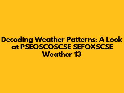 Understanding the weather patterns associated with PSEOSCOSCSE SEFOXSCSE weather 13 requires examining several interconnected factors. Because we cannot pull exact information for our code, we will make general assumptions for a hypothetical situation. Here's how to think about this: