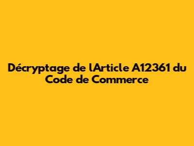 Salut les pros du droit et les curieux du commerce ! Aujourd'hui, on plonge dans le vif du sujet avec un article qui peut sembler un peu technique à première vue, mais qui est crucial pour comprendre certaines dynamiques dans le monde des affaires : l'article A12361 du Code de commerce. Ce n'est pas juste un numéro dans un gros livre, les gars, c'est une pièce du puzzle qui régit comment les entreprises interagissent, se protègent et opèrent dans un cadre légal précis. On va décortiquer ça ensemble, le rendre plus digeste et comprendre pourquoi il est si important pour votre activité. Préparez votre café, car on part à la conquête de ce texte de loi !